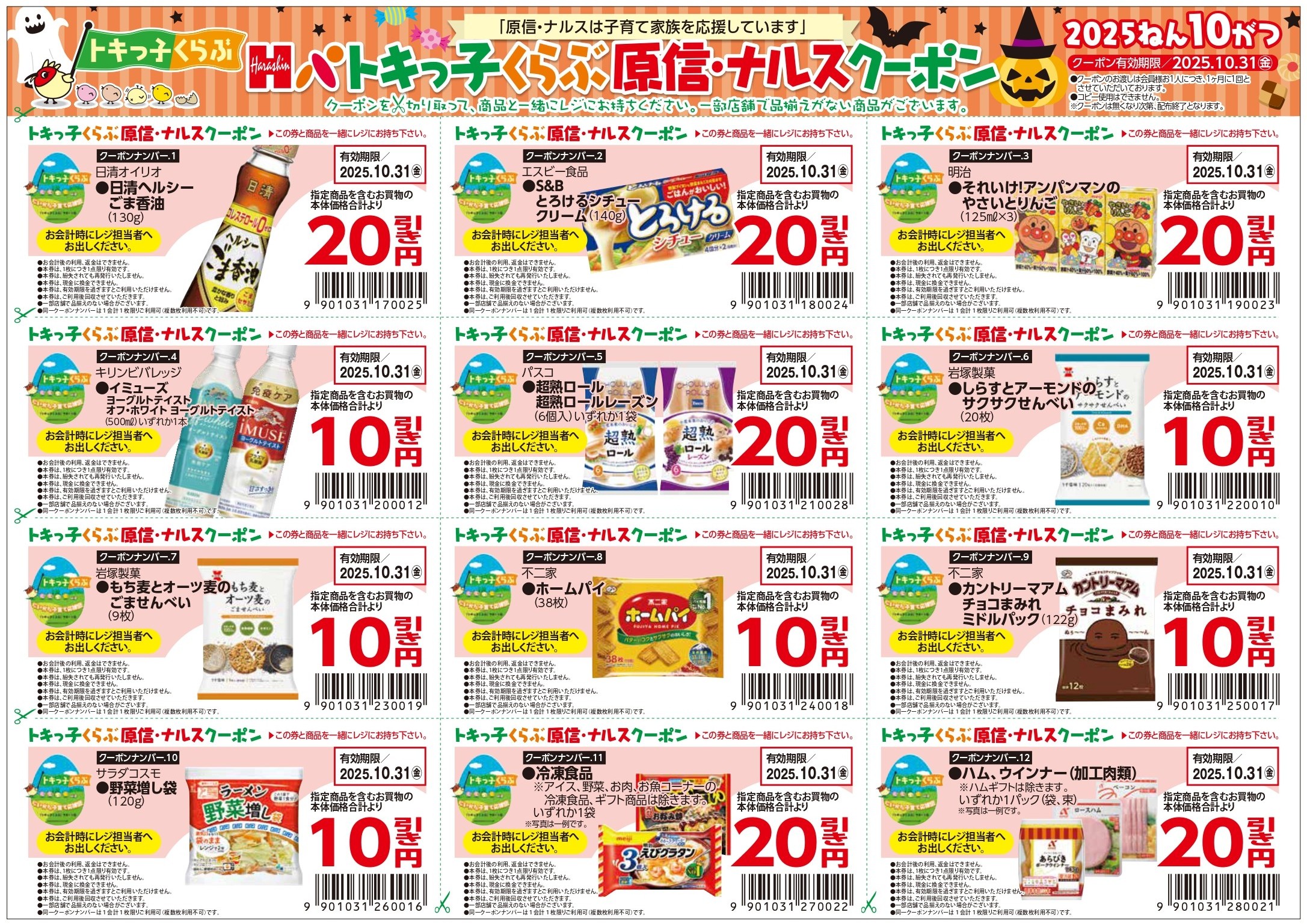 【トキっ子会員限定】原信・ナルス 10月のクーポン情報! クーポンをつかって、お得に賢く…