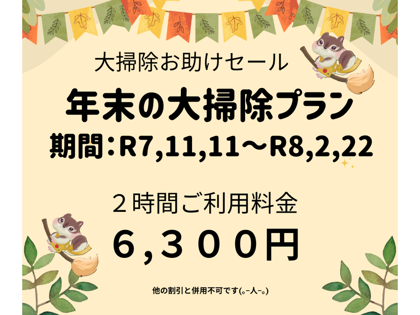大掃除お助けセール開催中! お得なプランで『自分時間』を確保しよう 大掃除お助けセ…