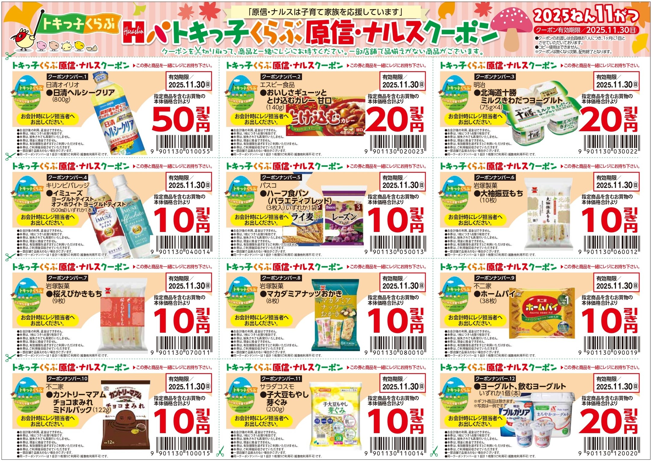 【トキっ子会員限定】原信・ナルス 10月・11月のクーポン情報! クーポンをつかって、お得…