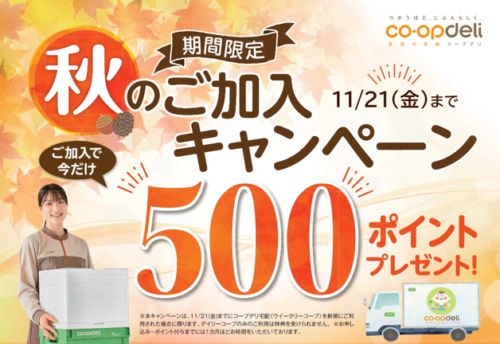 コープデリ お得な秋の入会キャンペーン開催中! ※本キャンペーンは。11/21(金)までに…