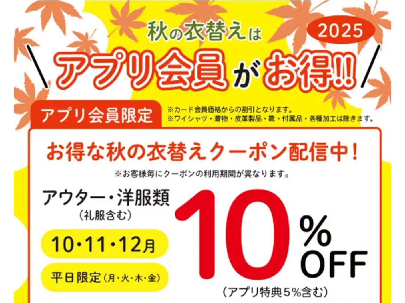秋の衣替えセール開催中! ニューワタナベ、街のせんたく工房全店で会員様限定秋の衣替えセ…