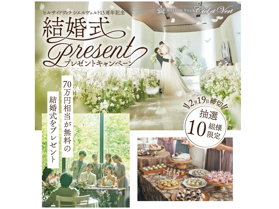 \15周年記念/ 結婚式プレゼントキャンペーン 【抽選10組様限定】 ヒルサイド…