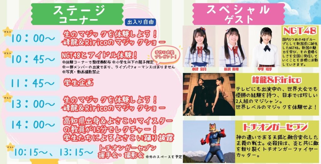 アイドル体験やマジックショーなどスペシャルゲストによるここでしか経験できないステージイベント盛りだくさん!