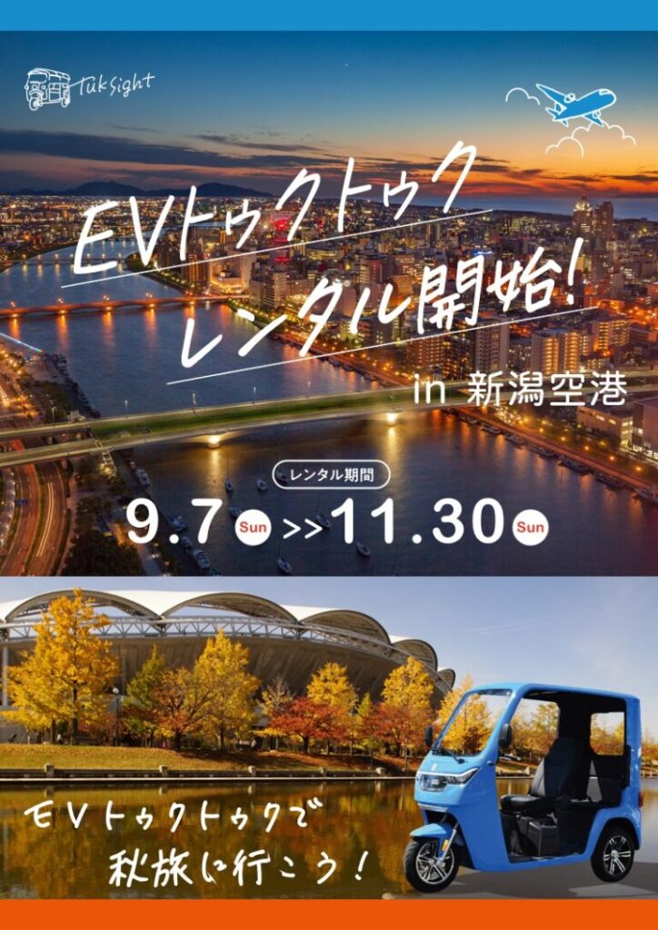 新潟初 電動モビリティ専門店トゥクサイトが新潟空港でEVトゥクトゥクのレンタルを開始しました!