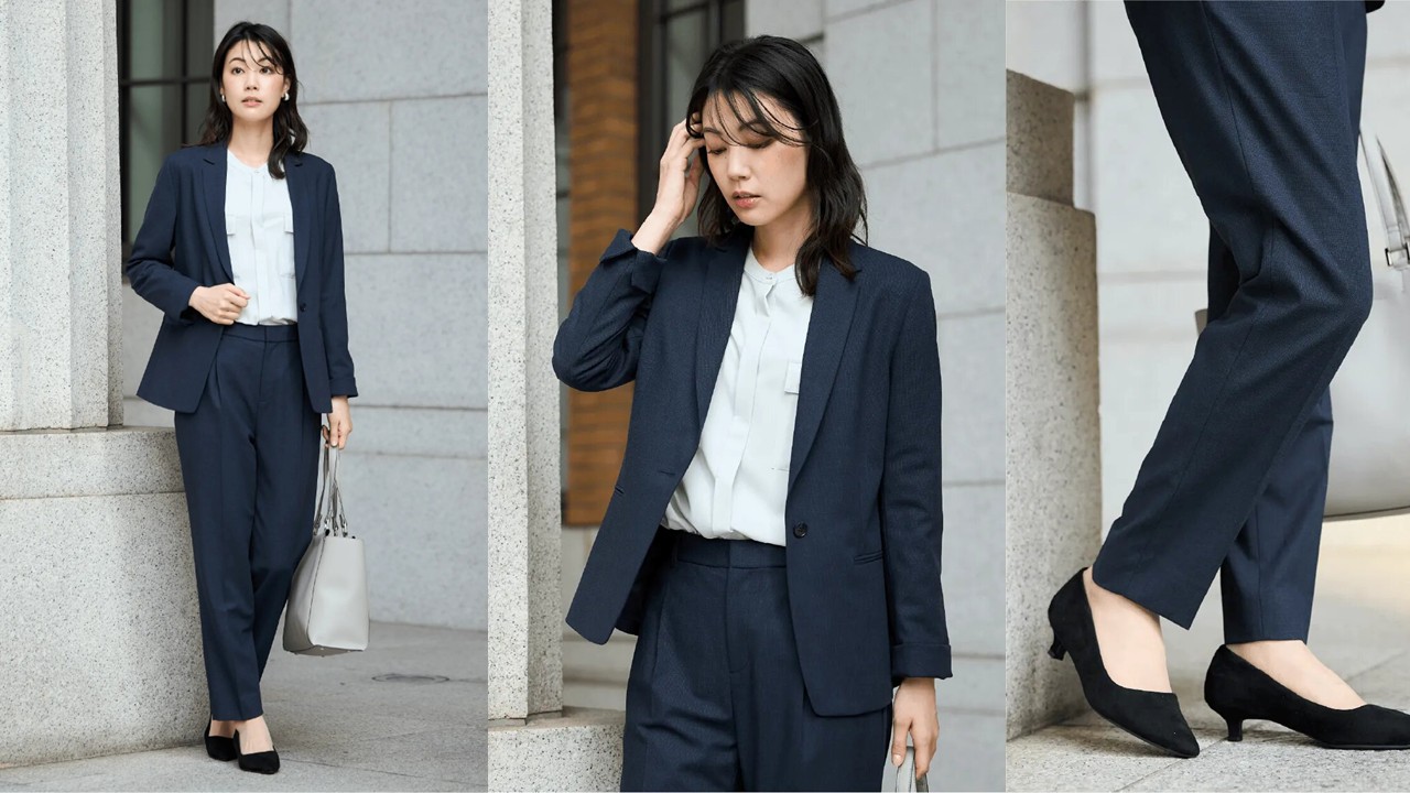 ポイント①ジャケットはダブルブレストながらもスッキリシルエット