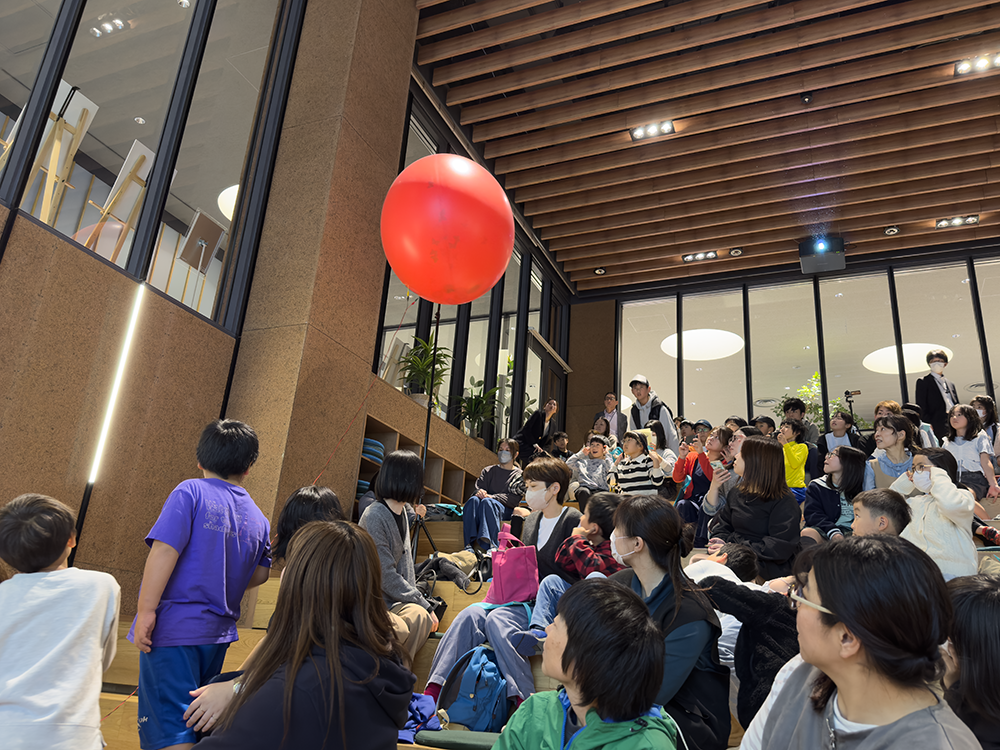 今回は、電気エネルギーを熱エネルギーに変換して、巨大くす玉風船を割る実験も行われました!