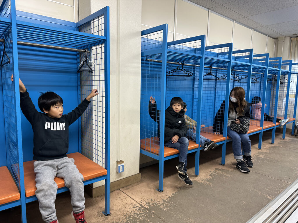 まずは選手控室!普段はここで選手が試合の準備をしているんだな~とみんな興味津々でした♪