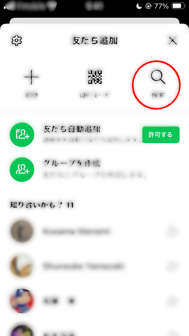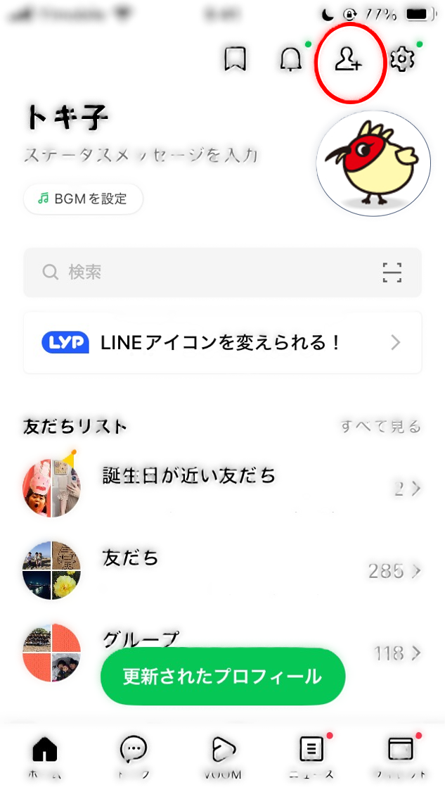 1.[ホーム]>右上の[友だち追加]アイコンをタップ