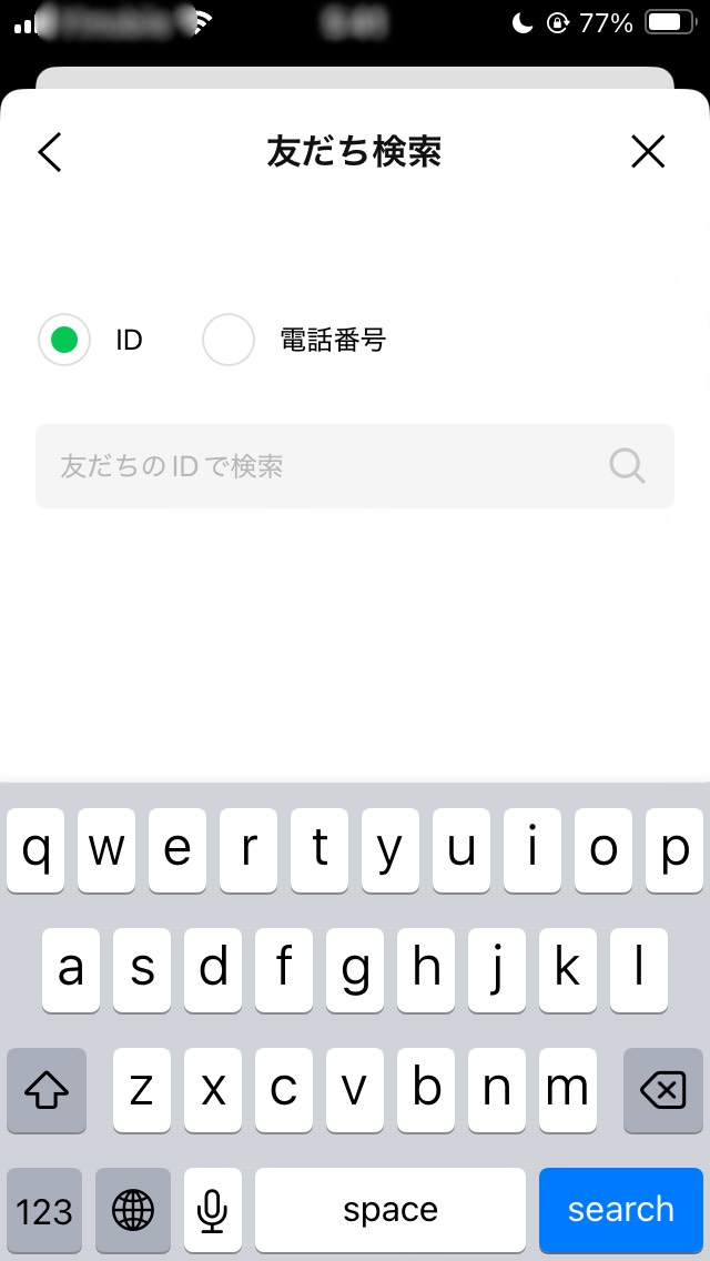 3.トキっ子くらぶID「wed7717i」を入力し[検索]アイコンをタップ
