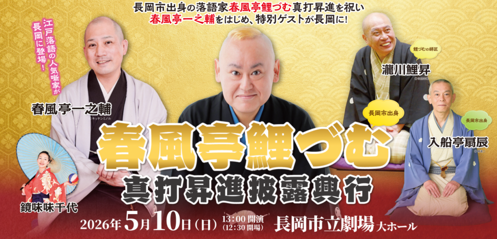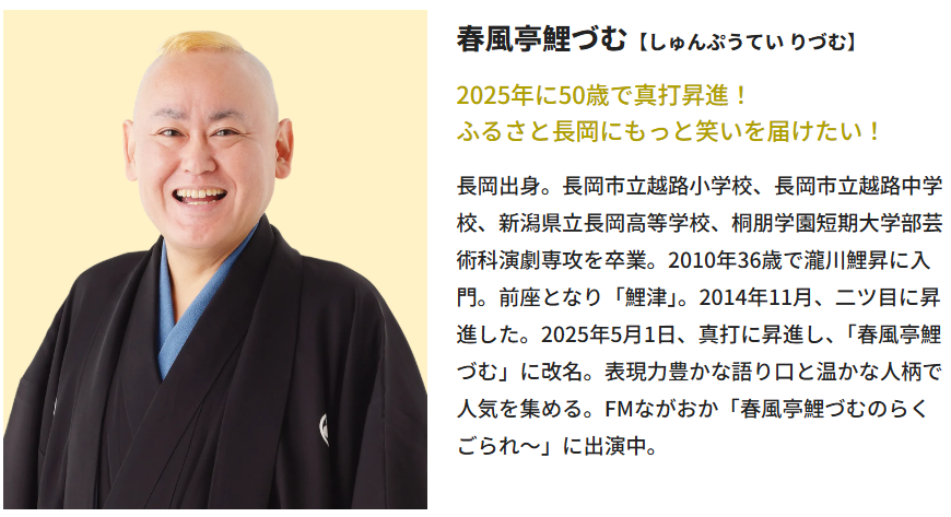 2025年に真打昇進した春風亭鯉づむと一緒に長岡に笑いをお届けします。