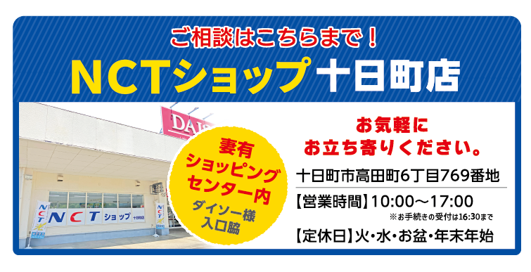 NCTショップ 十日町店:10:00~17:00 ※お手続きの受付は16:30まで