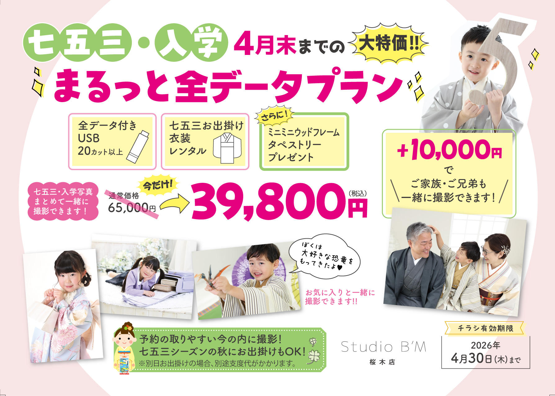 今回は入園・入学&七五三まとめて一緒に撮影ができて、全データがついてくる!