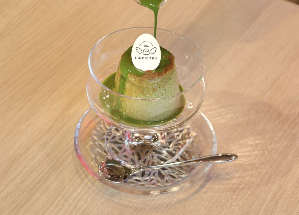 今回は香り高い宇治抹茶を贅沢に使用した、なめらかな口どけの『抹茶しあわせプリン』が誕生。