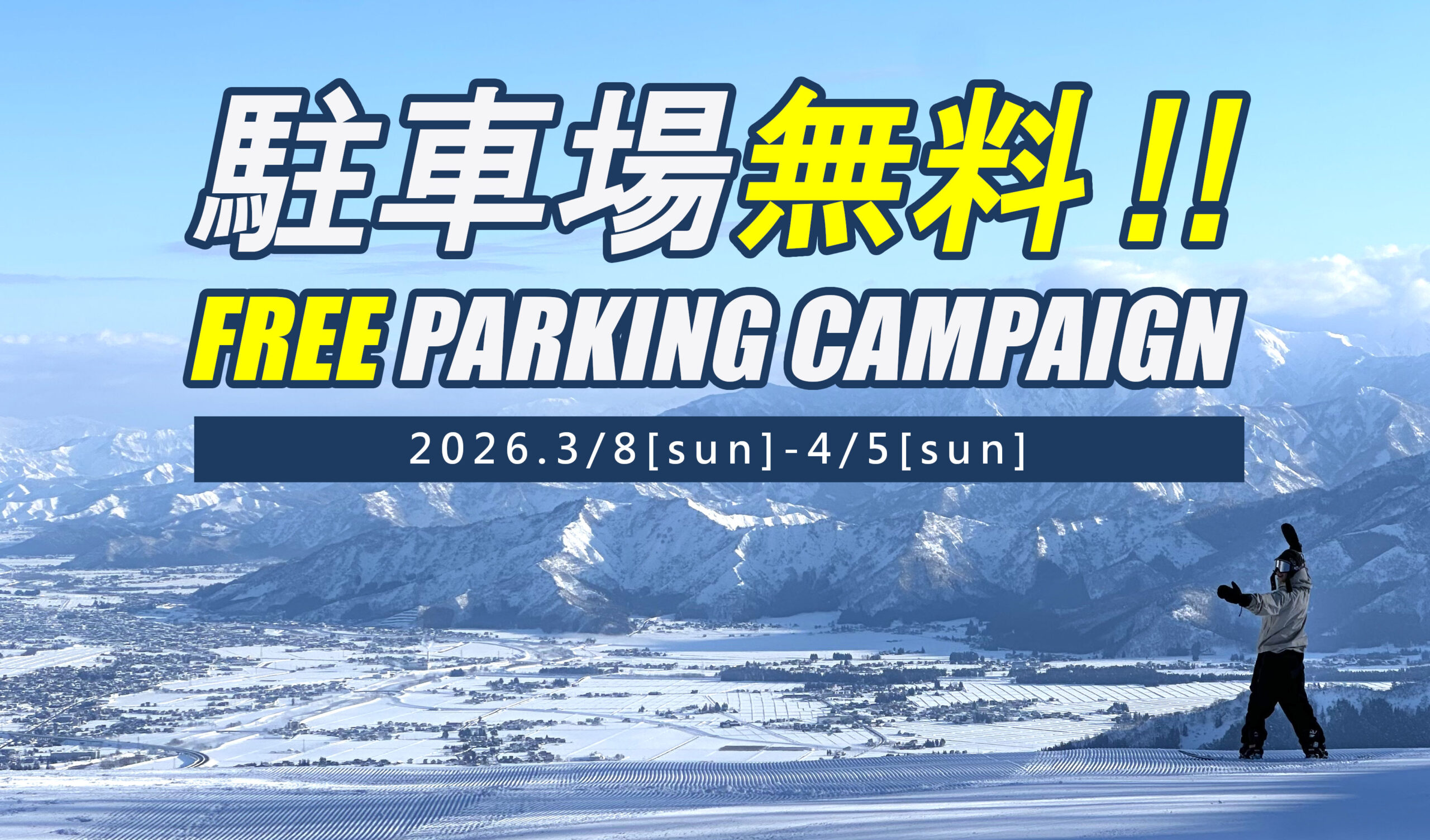 3/8(日)〜4/5(日)の期間限定で日帰り駐車場が【無料】に!