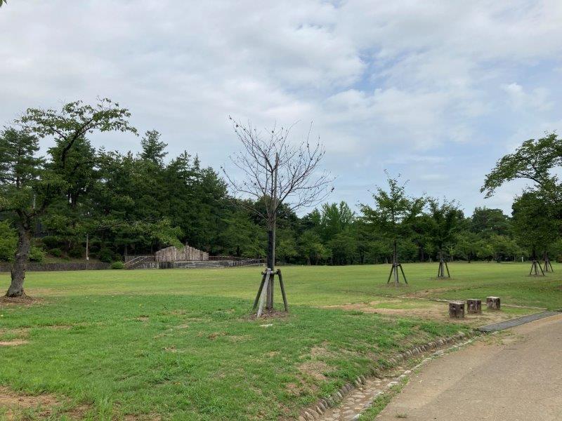 何して遊ぼうか?と想像が膨らむ広い自由広場の周りには、ツツジや遊散山や日本庭園もあり、お散歩だけでも楽しめます。