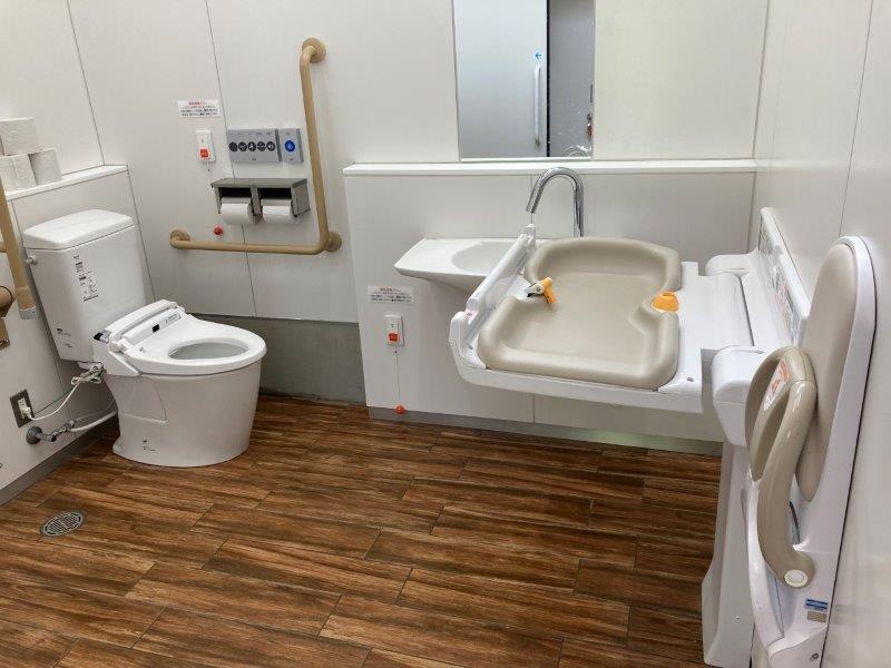 広い多目的トイレにはオムツ交換台がついています。