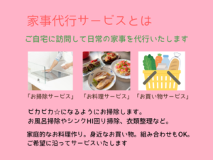 お掃除、お料理、お買い物など日常の家事を丁寧に代行いたします。